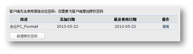 如果您不再使用某个客户端,或希望删除未使用的授权密码,可以点击“停用”按钮。