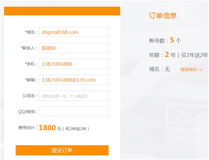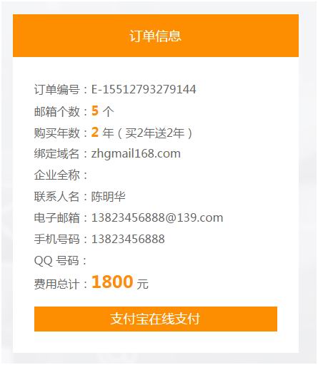 然后点立即购买 到下一步生成订单信息,填写申请资料
