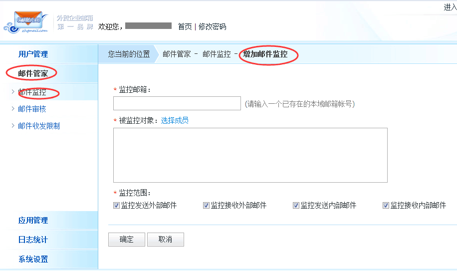 按提示要求填写上监控邮箱地址与被监控对象,确定保存后马上生效。