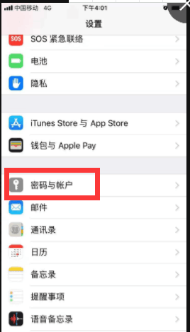 1、首先打开iPod touch,进入 设置 - 页面向下,找到“邮件”→ 选择“帐户”。