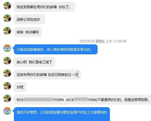 东莞的戴小姐在线发来了消息:“我走到那都在用你们的邮箱 你忘了。进新公司也找你”