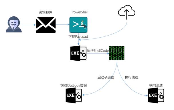 经长期追踪,纵横随心邮安全中心发现多个带有恶意宏代码的Emotet鱼叉攻击邮件,邮件通过诱导用户点击邮件中的启用宏从而执行宏代码,利用PowerShell下载并执行下阶段攻击载荷,从而实施攻击。具体攻击模块功能包括OutLook数据窃取以及横向渗透模块。