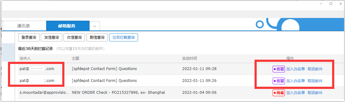 下图为被我纵横随心邮邮件系统识别并拦截成功的钓鱼(仿冒)邮件
