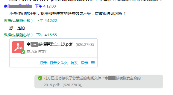 重要邮件终于在指定的时间内发给了美国客人。Fiona对纵横随心邮客服表示感谢“这么晚了还在服务客户,业务精神值得我学习哈。”对此她深感意外,没想到问题解决的是如此迅速