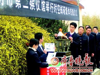 29日,潍坊第二殡仪馆举行“时空邮箱”首次祭奠焚烧仪式。 本报记者 丛书莹 摄