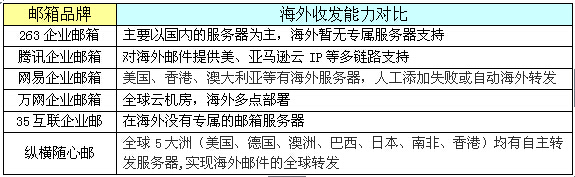 纵横随心邮是定位为专业的外贸企业邮箱品牌;11年外贸企业邮箱运营经验;全球5大洲服务器、海外邮件到达率高;为国际反垃圾邮件联盟组织成员,有着“外贸邮箱第一品牌”的美誉。