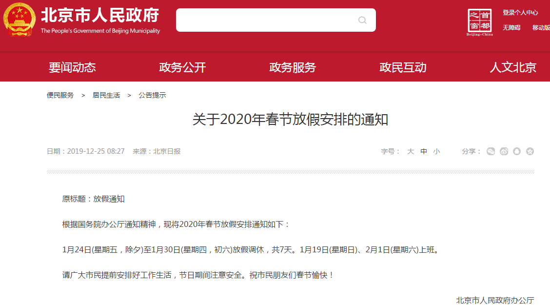 根据国务院办公厅通知精神,现将2020年春节放假安排通知如下:
