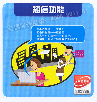邮件到达短信通知、邮箱内短信群发,让email和短信紧密结合,让您的商务、问候及时到达。